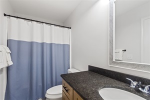 A large washer and dryer on the upper level. An iron and ironing board are provided in the walk-in closet off the King bedroom.