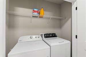 There is a large washer and dryer on the upper level. An iron and ironing board are provided in the main bedroom closet.